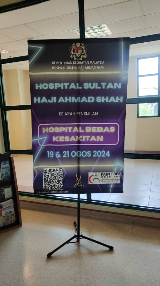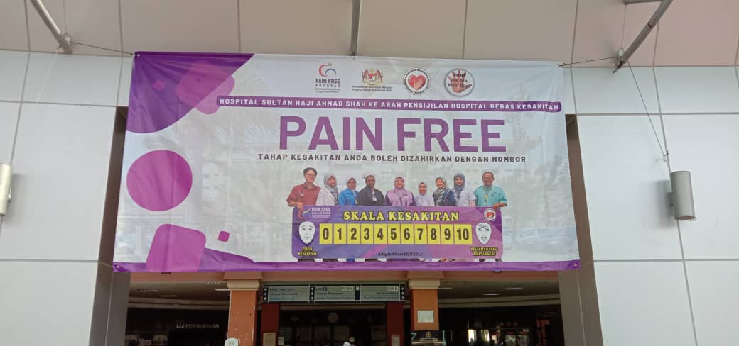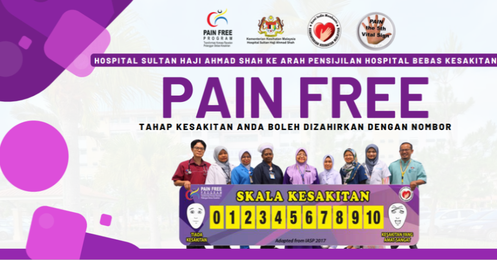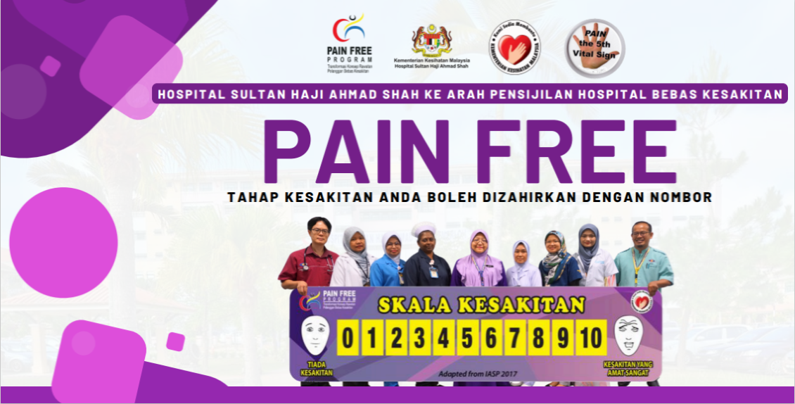 Hospital Sultan Haji Ahmad Shah (HoSHAS) telah mengamalkan tahap kesakitan sebagai tanda vital yang kelima sejak tahun 2008 selaras dengan Pekeliling Ketua Pengarah Kesihatan Bil. 9 Tahun 2008 Pelaksanaan Tahap Kesakitan Sebagai Tanda Vital Kelima (Pain as Fifth Vital Sign).  Seterusnya, berikutan Surat Pengukuhan dan Perluasan Skop Pain as 5th Vital Sign dan Pain Free Programme di Semua Fasiliti Kesihatan KKM bertarikh 30hb Ogos 2017 dengan nombor rujukan KKM.600-28/2/10 Jld2(43), hospital telah mula memperkasakan pelaksanaan tahap kesakitan sebagai tanda vital kelima dan melaksanakan Program Hospital Bebas Kesakitan mulai tahun 2018.