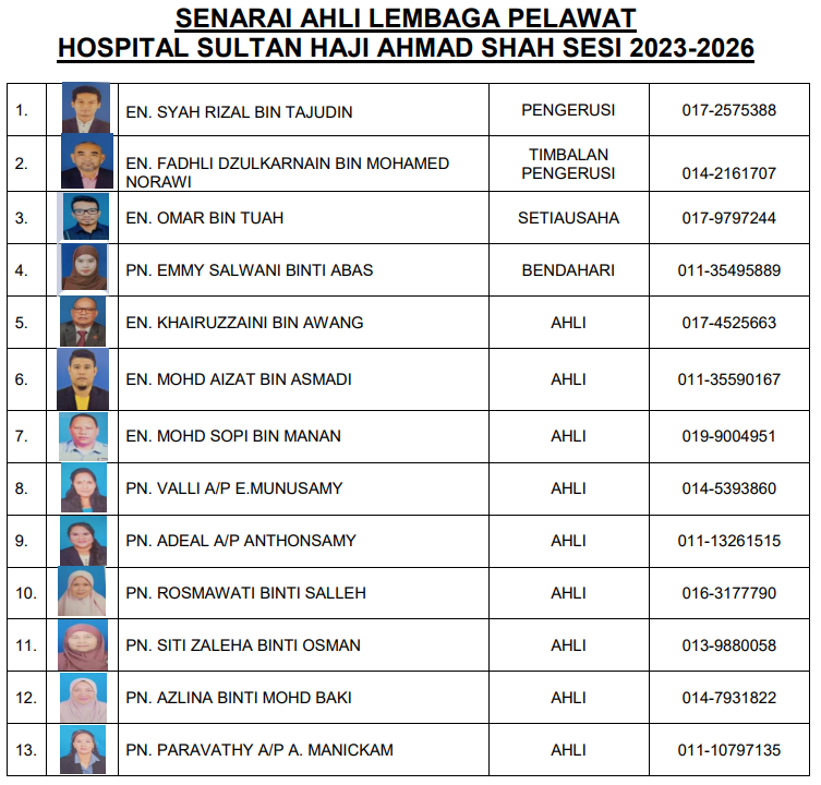 Hakcipta Terpelihara © 2022 Hakcipta Terpelihara Portal Rasmi Hospital Sultan Haji Ahmad Shah. Kemaskini : 03/04/2026 Jumlah Pelawat : 19005
